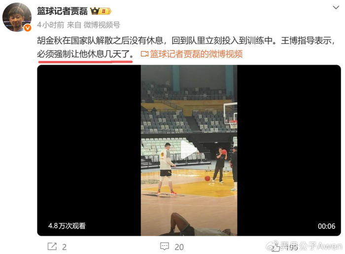 而在国家队任务结束后,胡金秋并没有休息,而是立刻返回球队,投入到了广厦的备战训练中,就连广厦主帅王博都表示:“必须强制让他休息几天了。”而胡金秋这样的敬业精神,也引得球迷的一致肯定:“发型、刻苦度、沉稳感觉都有点像姚明,大秋就是目前男篮最靠谱的人,比周琦他们几个感觉都沉稳。”