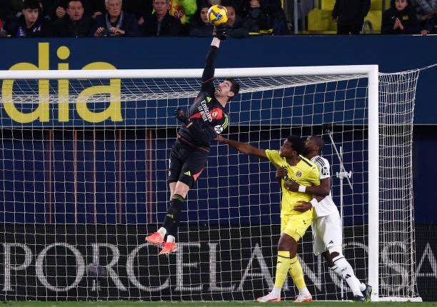 当然在姆巴佩进球前后,真正顶住一口气的还是这条防线,主要是库尔图瓦和劳尔·阿森西奥。本场楚阿梅尼首发充当右中后卫,阿森西奥归到左边。仅靠弗兰·加西亚基本顶不住对方的边路连续进攻,几次都是阿森西奥像火箭一样杀出阻截破坏。而库尔图瓦至少贡献了3次决定性扑救,帮助球队熬过了最凶险的时段。到了下半场,比利亚雷亚尔虽然依然占据着中场,但右路传中越来越离谱,皇马的防空则越来越稳固。